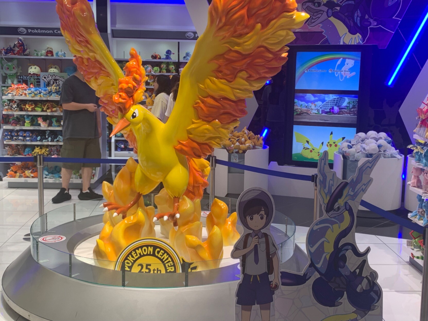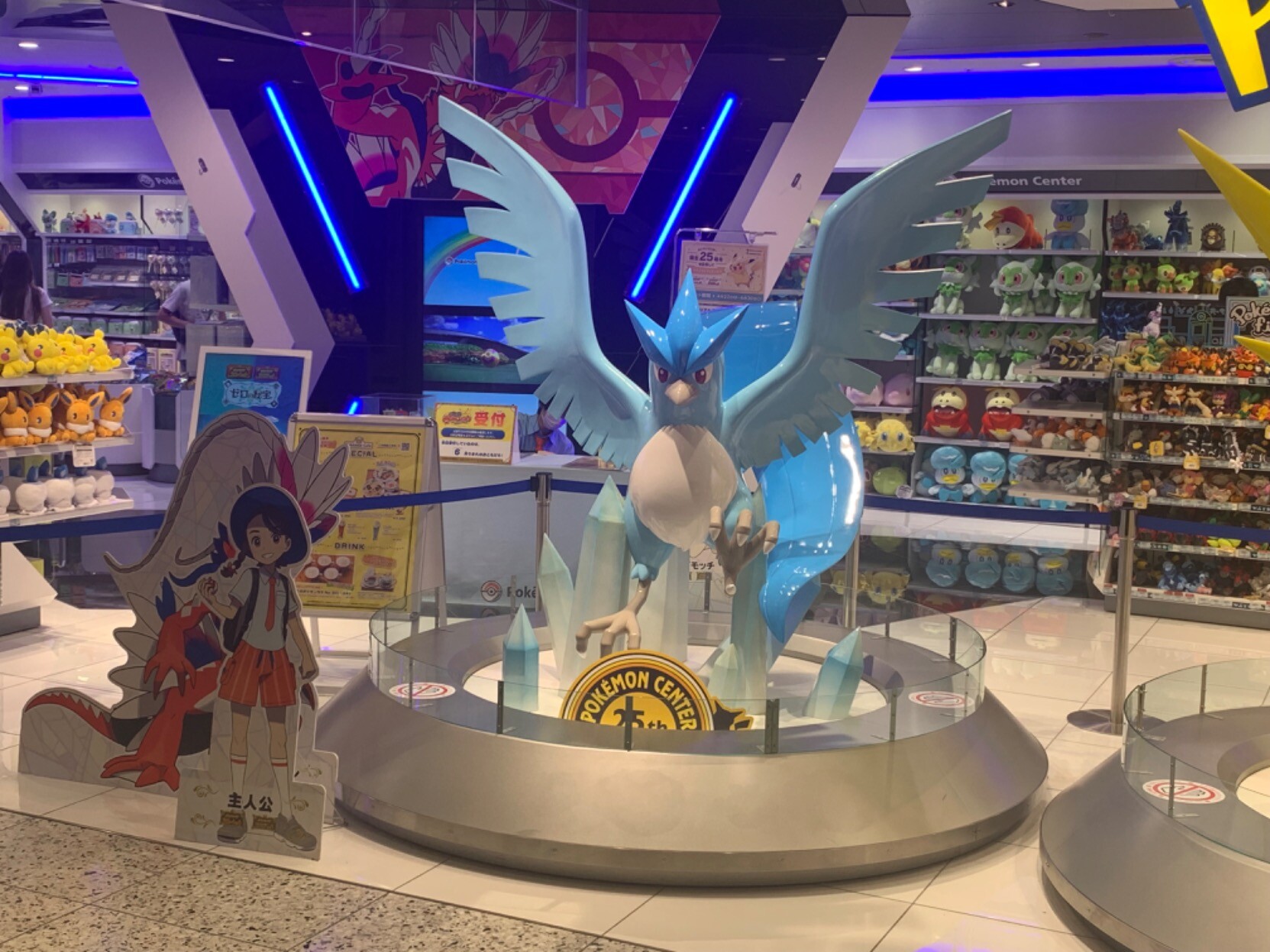 今天去了大阪的宝可梦中心,买了只超大的新叶喵,顺便拍了下三圣鸟(抱歉忘记拍闪电鸟了,手绘一张代替一下