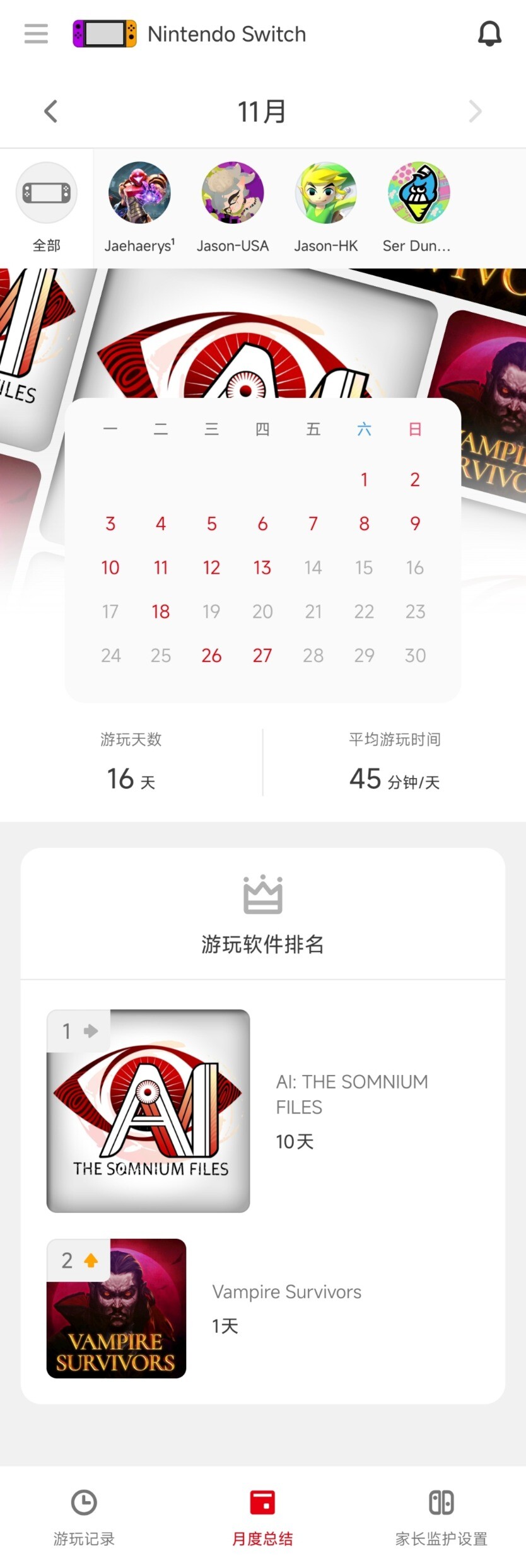 本月总游戏时长:35h18min,较上月增长12h7min,通关了一个游戏,马惊奇和双影奇境则志在通关。