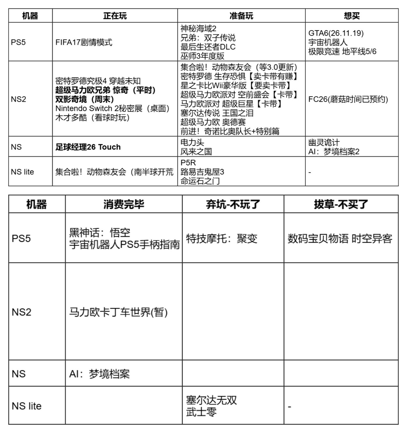 ⑥“不打算玩”:纯属个人偏好,完全没有说这些游戏不好的意思。