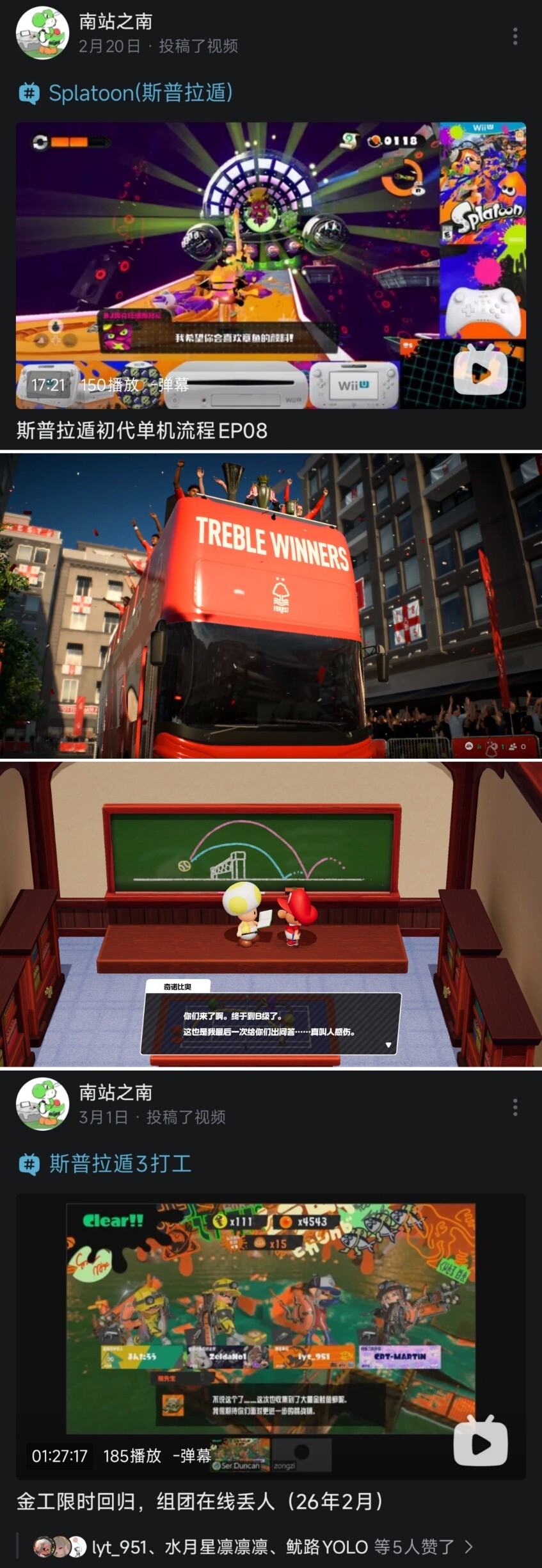 斯普拉遁1单机模式(6h24min):模拟器统计总时长:10h,从喷3第一个DLC换皮广场就开始期待能够玩到喷1英雄模式,本月终于得偿所愿完成通关!开着直播在最后一张大地图上边找关卡茶壶边咒骂“任天藏”,找到打完后来到最后一关,wow!氛围和压迫感都相当优秀,盐辛节情怀满满!打起来还是相当有难度的,鏖战打通后成就感满满。