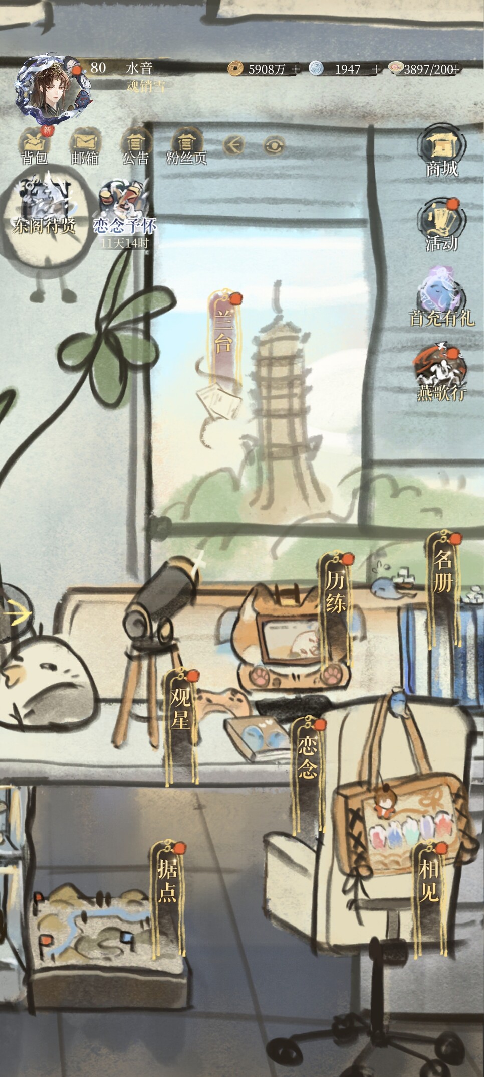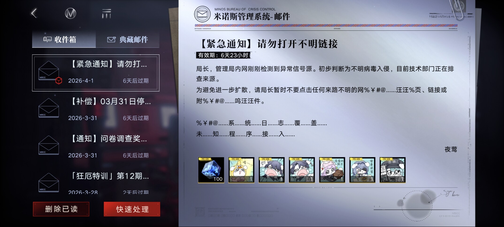 第六妖守:买了没打。画师是画音企Dear Vocalist的苏太太,官配是丰永利行!tossy当官配的乙游是不是只有这根独苗来着(虽然他晚钟也有出演),但是UI和整体美术都很简陋像是拖欠了画师工资(x)
