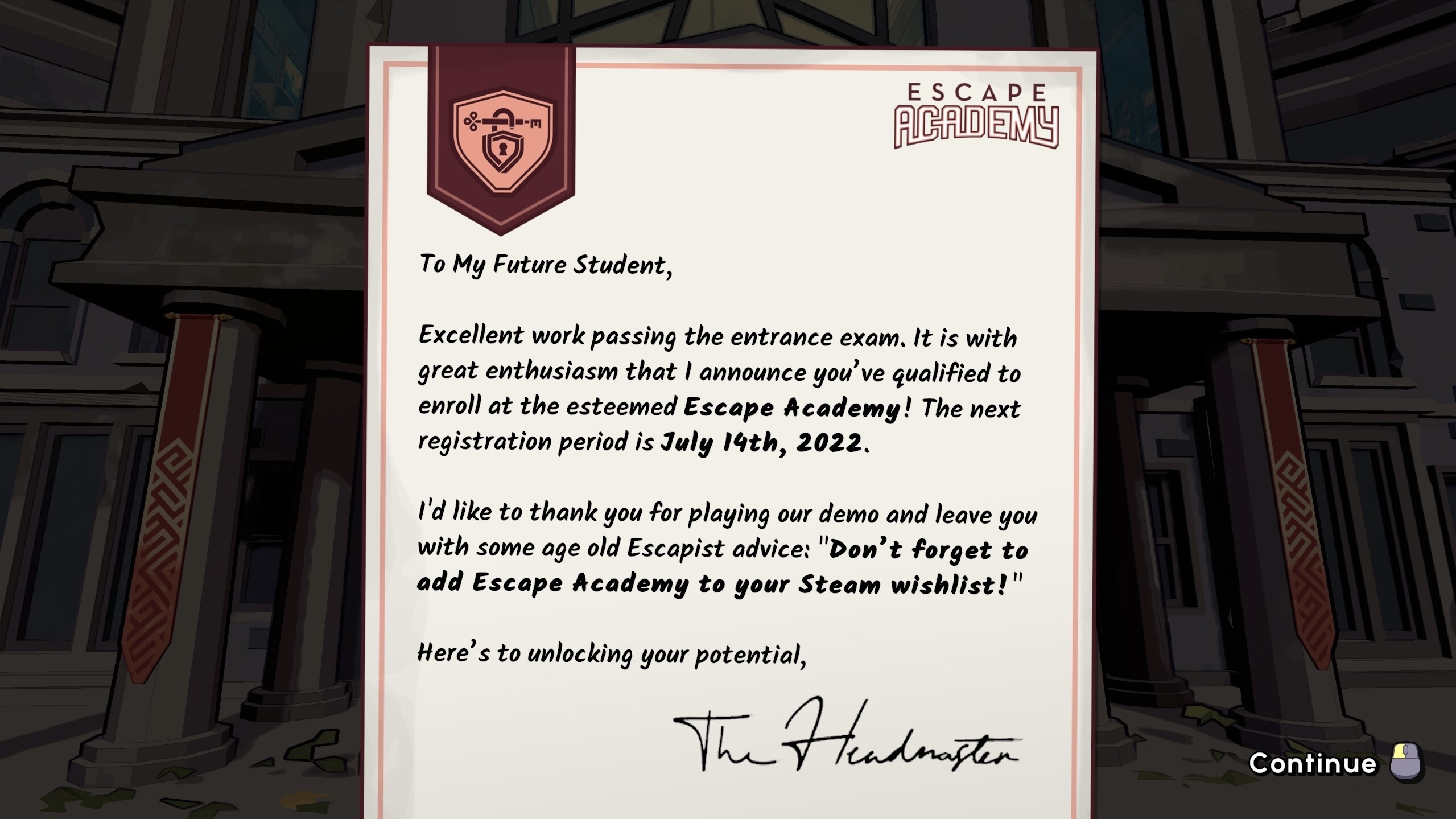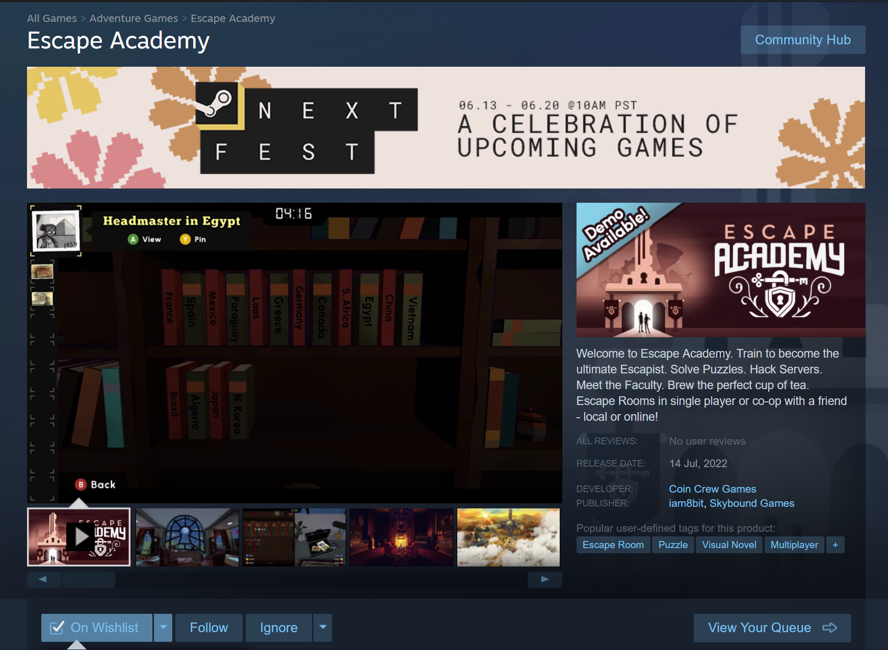 标题意为“逃脱学院”,大概就是去一个密室逃脱的学院参加重重考验的意思,设定反正挺无聊的。