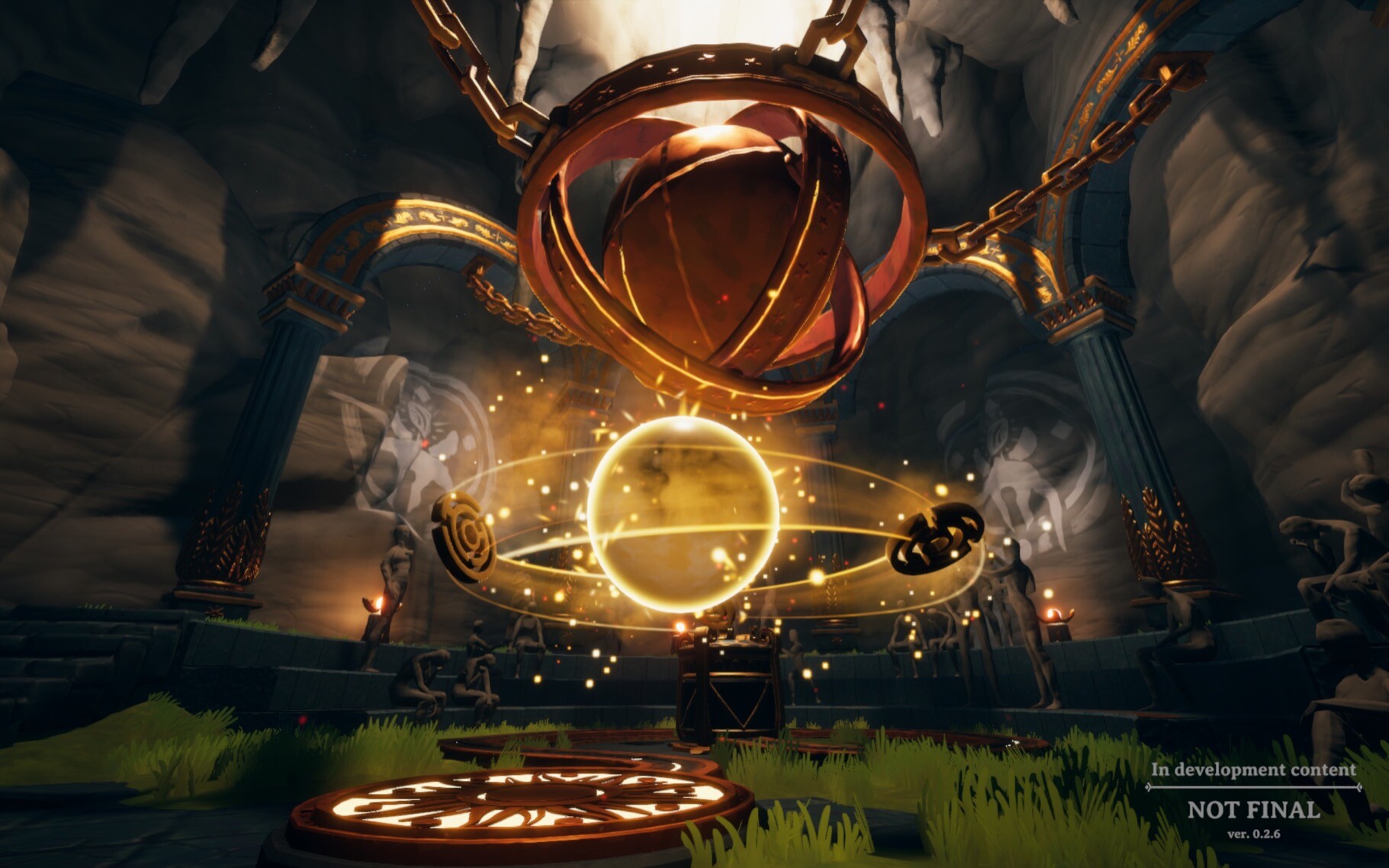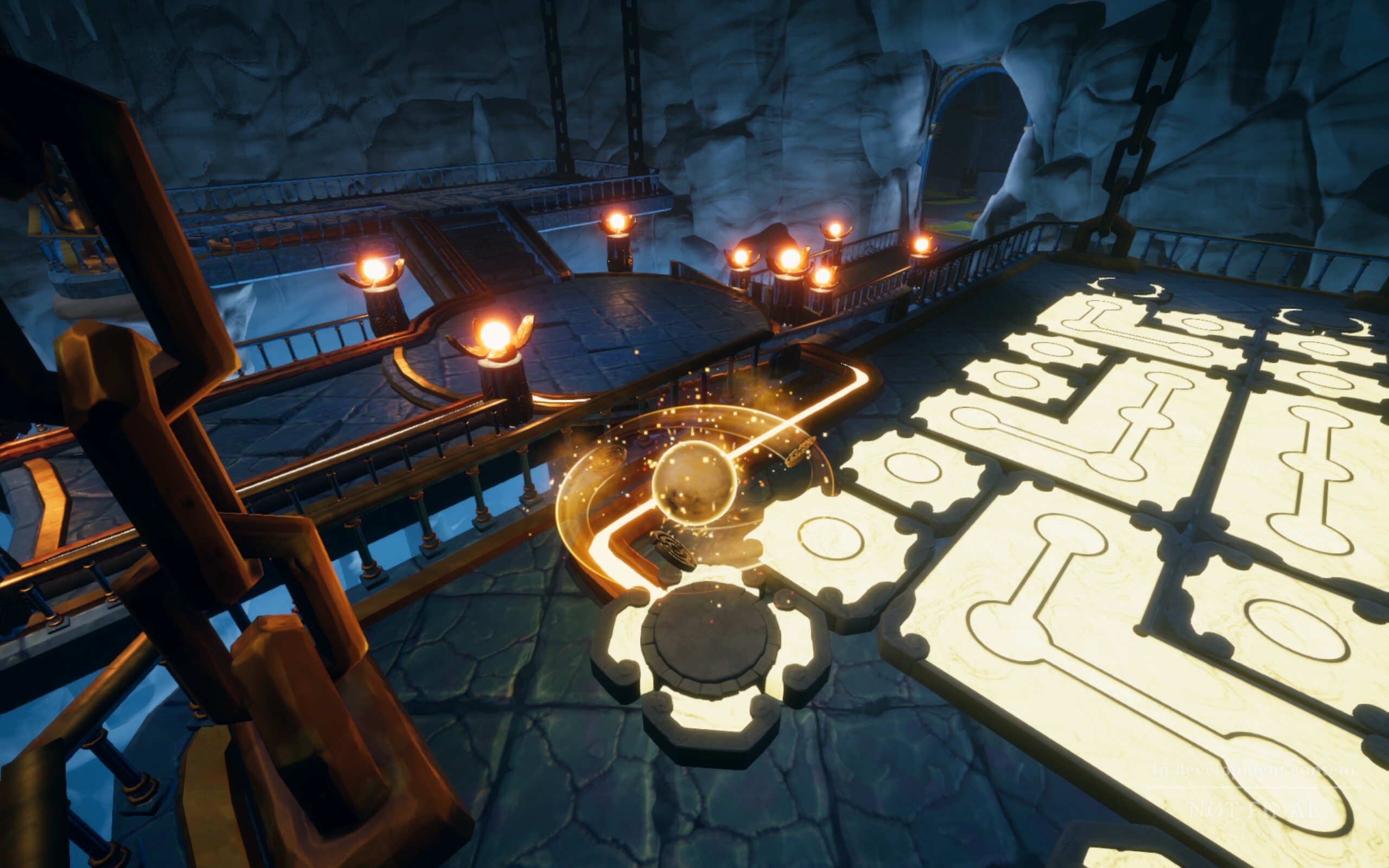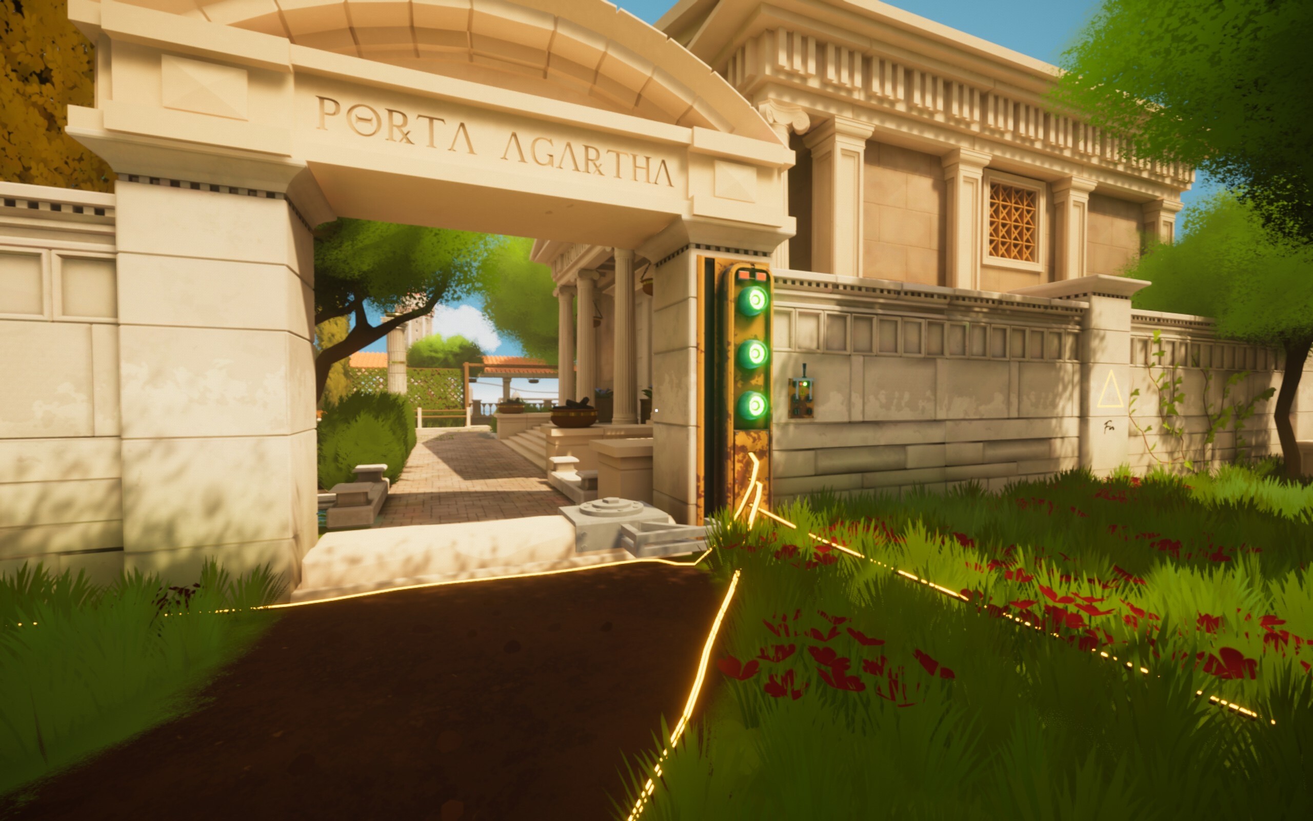 - 一开始玩家作为一个小光球出生在一个山洞里,可以为你经过的道路带来绿意,开启路边的小灯……随着向前行走会遇到一些走格子的谜题,很无聊很泛滥的那种(劝退点);但是再接着往前推进,新的机制逐渐被加入进这么一个简单的谜题里,游戏逐渐变得需要多次试错才能解开。最后集齐几把钥匙终于打开了大门,迎接我的是一个很开阔的世界(真的就很像见证者的架构了),这时候更多不同的机制开始涌入,挑战逐渐变得困难……