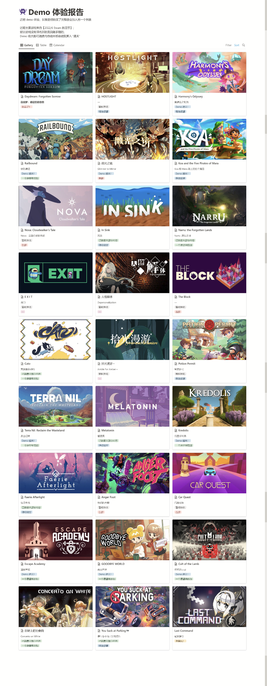 看了一下 Steam 的页面,刚好玩了 20 个,还有几个本来想写写的不过过于晕 3D 了,放弃